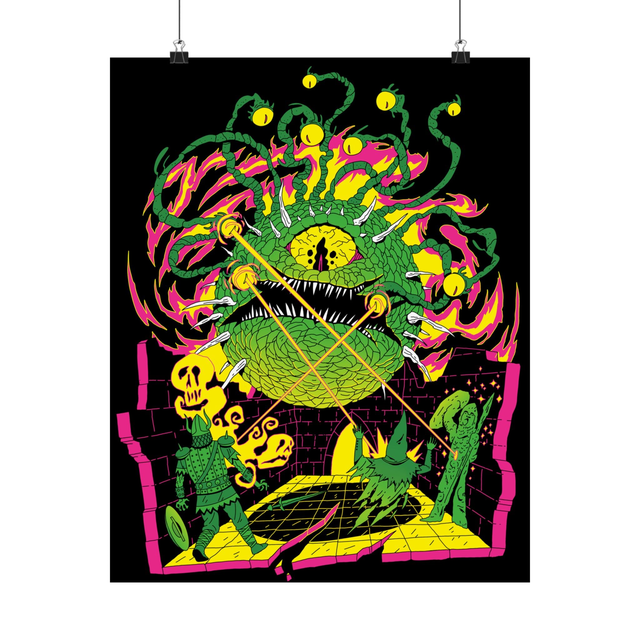 Splash your walls with some psychadelic D&D goblincore artwork! This original DnD print is the perfect gift for fantasy enthusiasts, dice rollers, and eccentric collectors. In the style of Ralph Bakshi, creator of Wizards and Fire & Ice, this piece will not go unnoticed by any Dungeons and Dragons player or DM. Original artwork prints by Łukasz Piwiński.