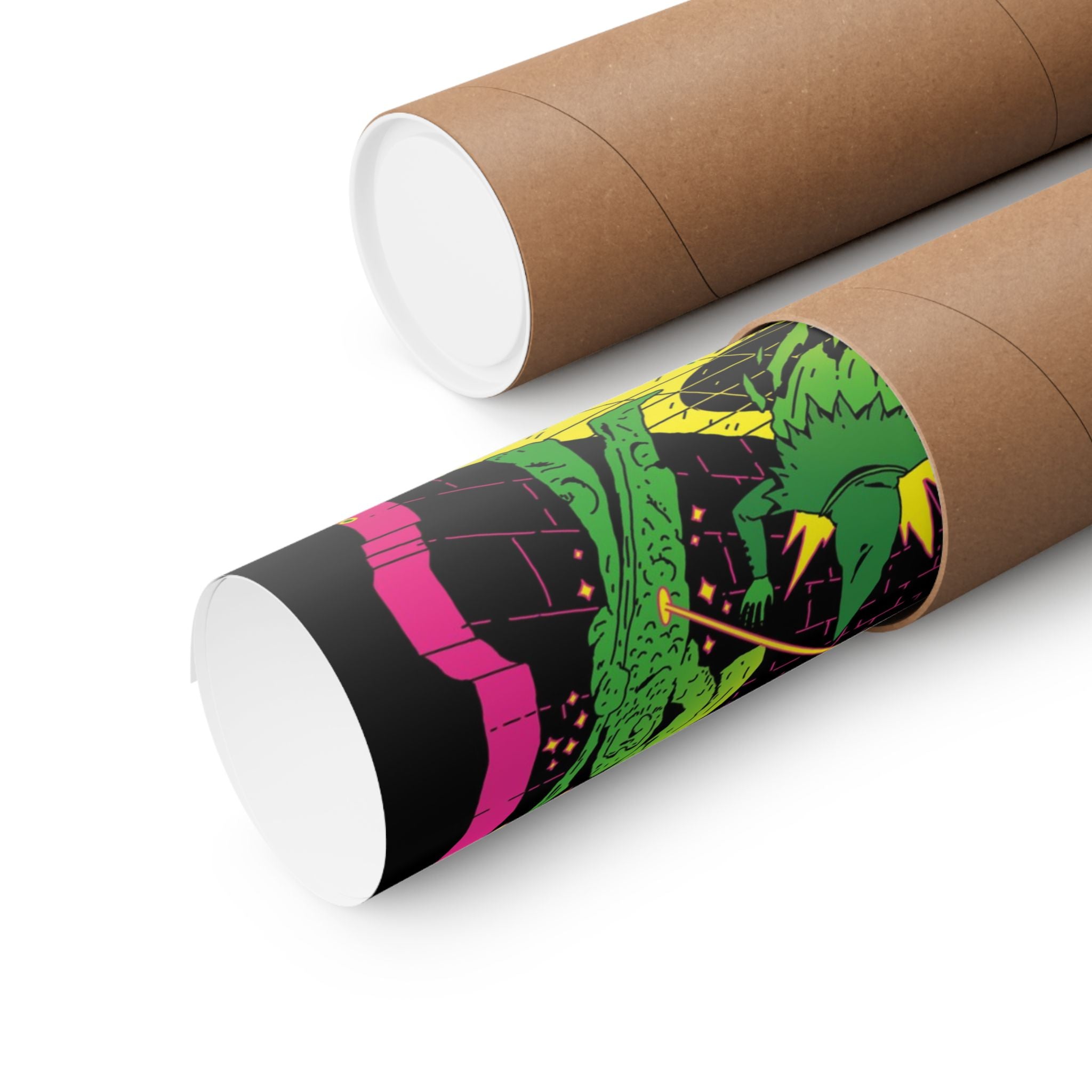Splash your walls with some psychadelic D&D goblincore artwork! This original DnD print is the perfect gift for fantasy enthusiasts, dice rollers, and eccentric collectors. In the style of Ralph Bakshi, creator of Wizards and Fire & Ice, this piece will not go unnoticed by any Dungeons and Dragons player or DM. Original artwork prints by Łukasz Piwiński.