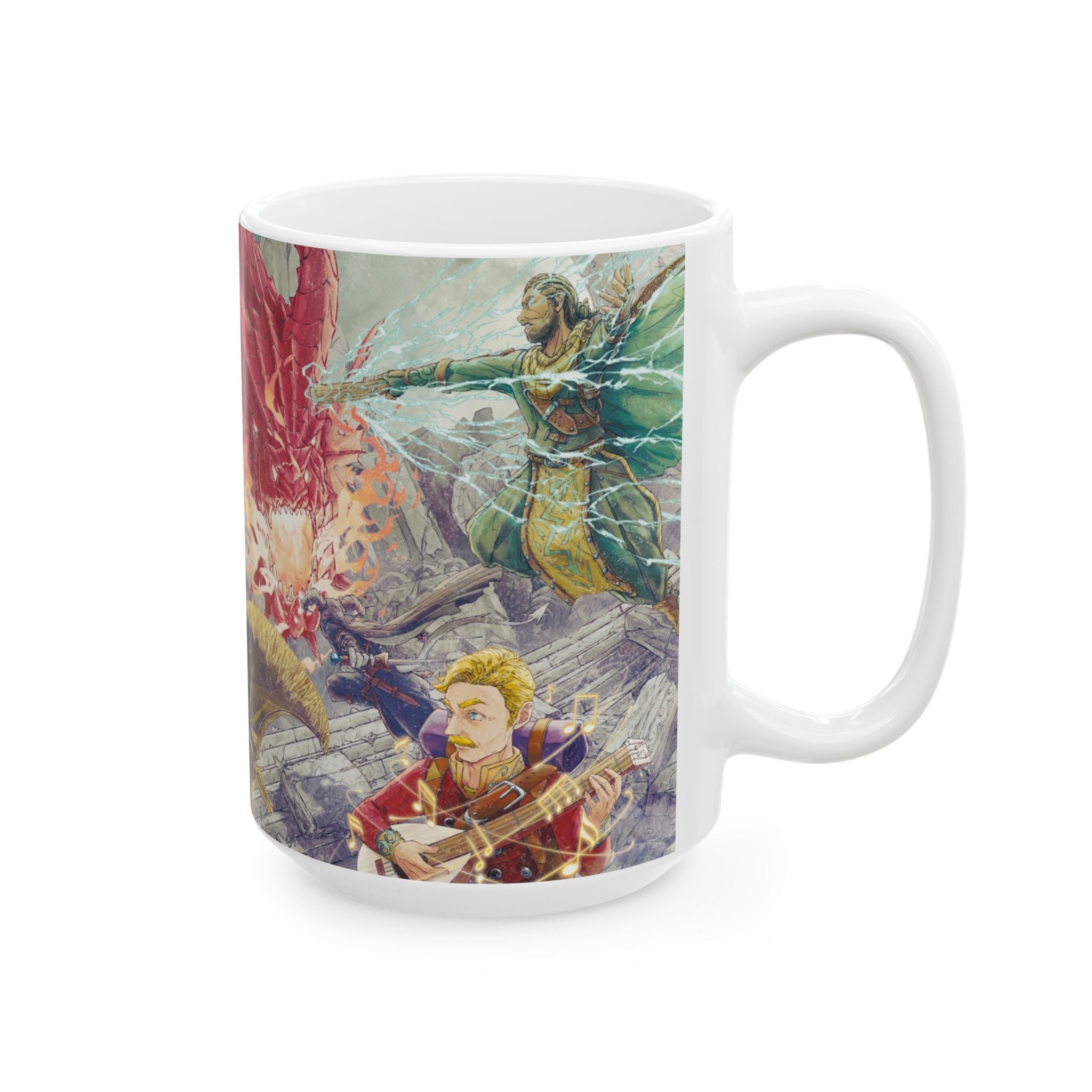 Bards, Fighters, Barbarians, and Wizards join forces to confront a Red Dragon. A classic scene of Dungeons and Dragons, sure to win over any player or DM. Inspired by 3rd, 4th, and 5th Edition D&D. Original artwork by